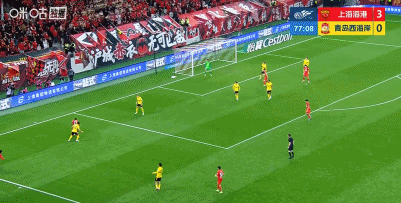 第78分钟,蒯纪闻前场抢断,安佩姆左路传中,武磊轻松打远角得手,梅开二度,海港4-0!
